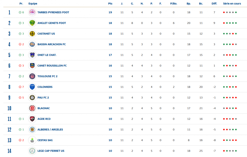 Le promu Tarbais prend ainsi la tête du championnat avec une longueur d’avance sur Anglet, puni de six points par la DNCG, Castanet et Arcachon. Une belle première partie de saison pour les hommes de Damien Fachan!