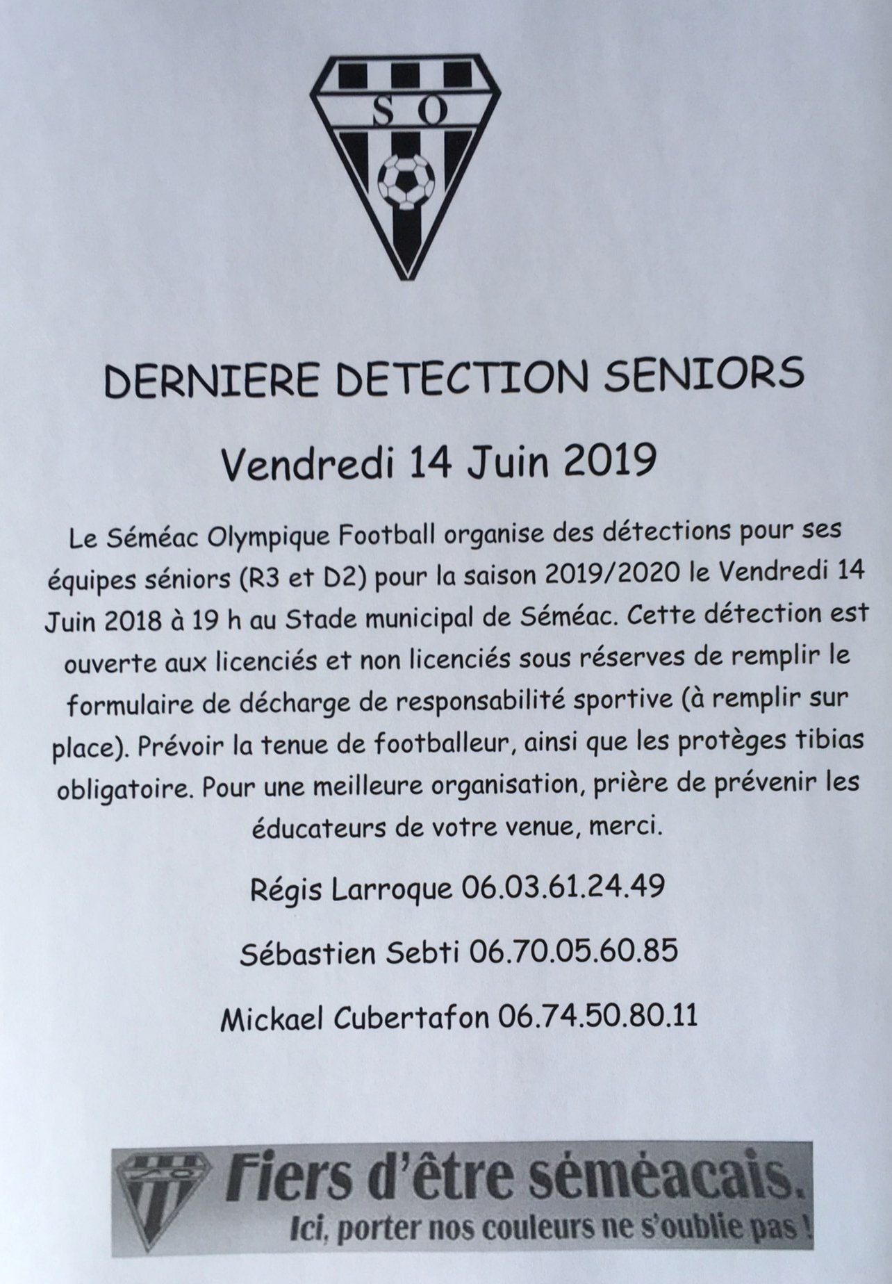 Le Semeac Olympique organise un match de détection le vendredi 14 juin à 19h au stade municipal de Semeac pour les equipes seniors (R3 et D2).