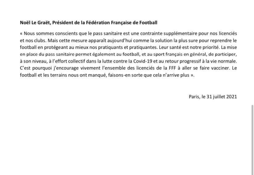 Le premier tour de la coupe de France sera soumis au pass sanitaire, tout comme les entraînements et matchs amicaux du mois d’août.