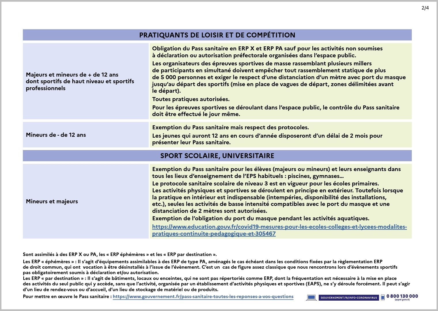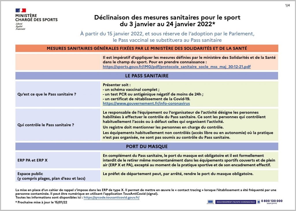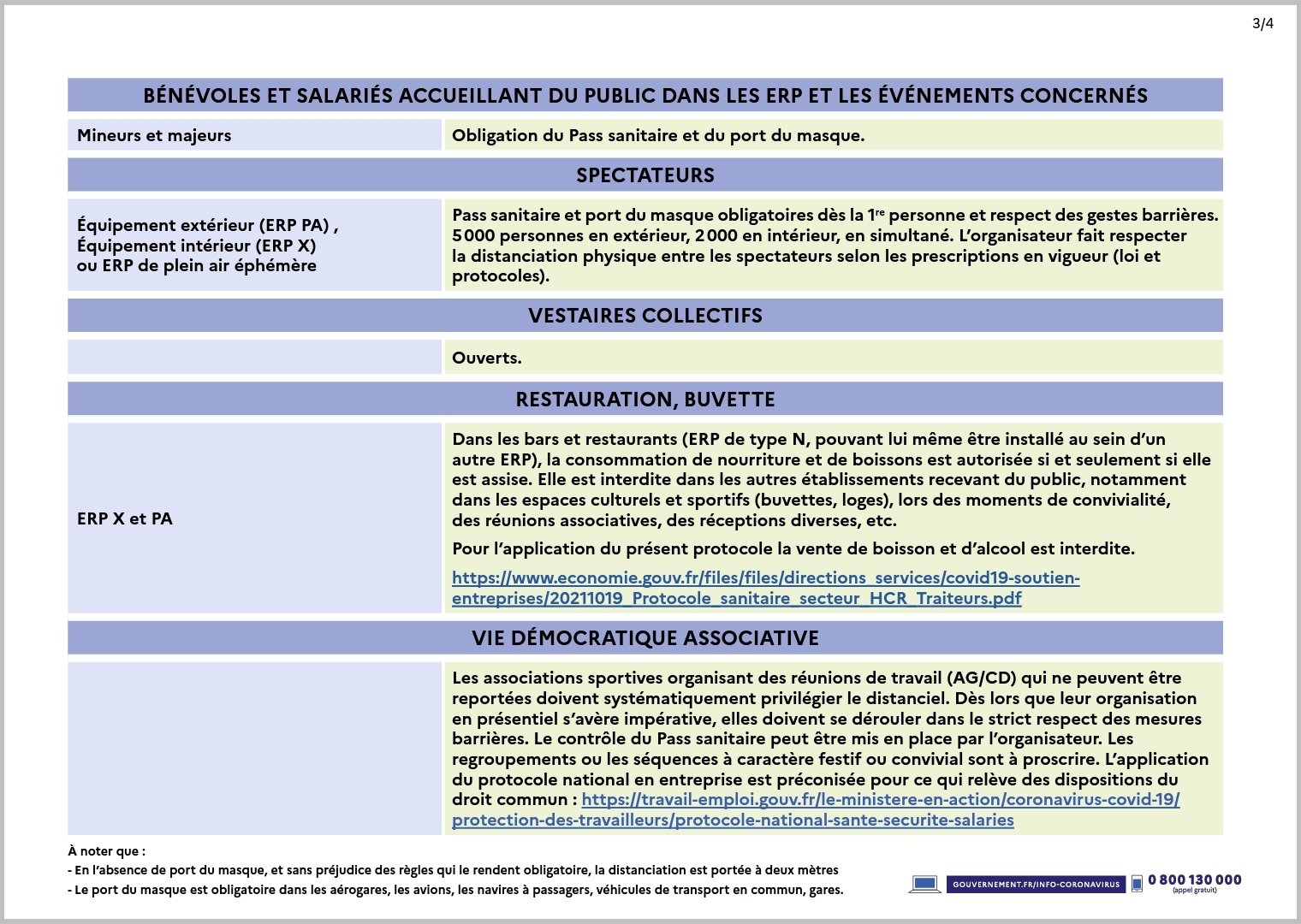 Covid – Pas de buvette, pas de spectateur debout, masque obligatoire dès 6 ans, pass vacinal…