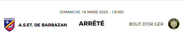 Le match de Départemental 1 entre Barbazan et Ger a dû être arrêté à la 45ème minute. Le score était alors de 2-0 en faveur de l’équipe locale qui dominait son adversaire. Un joueur des Boutons d’or n’a pas apprécié l’arbitrage de Mr Deraji et l’a fait savoir de façon véhémente récoltant deux avertissements coup sur coup menant à son expulsion. Le joueur veut alors s’en prendre physiquement à l’arbitre qui décide d’arrêter la rencontre, se sentant menacé et en insécurité.
