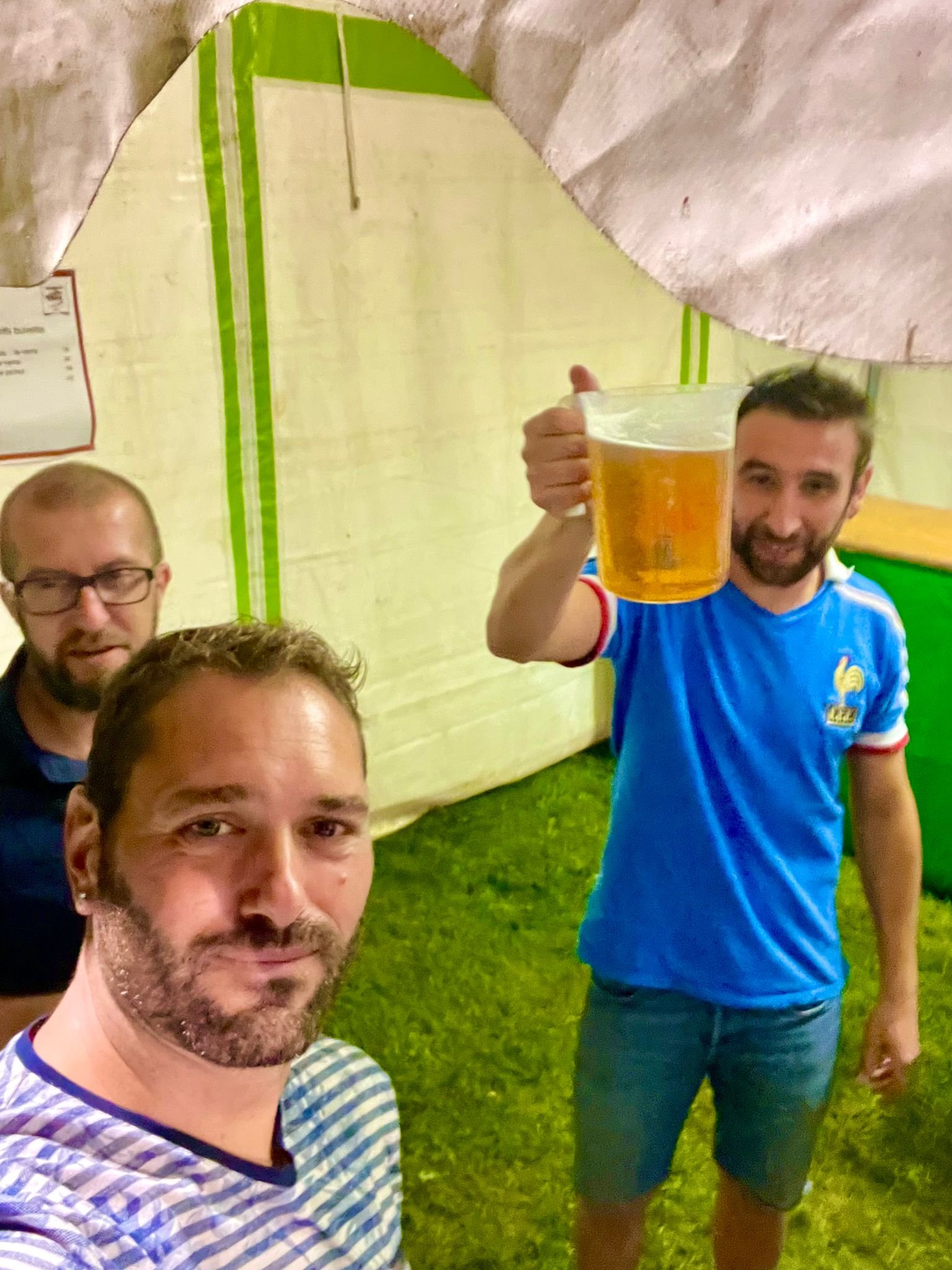 Fin du match, et on démaaaarre une autre histoire…celle d’une équipe de copains qui va se retrouver, heureux, sous cette bodega éphémère pour décaniller des litres de bières et un de jaune, arrivé sur le tard !
