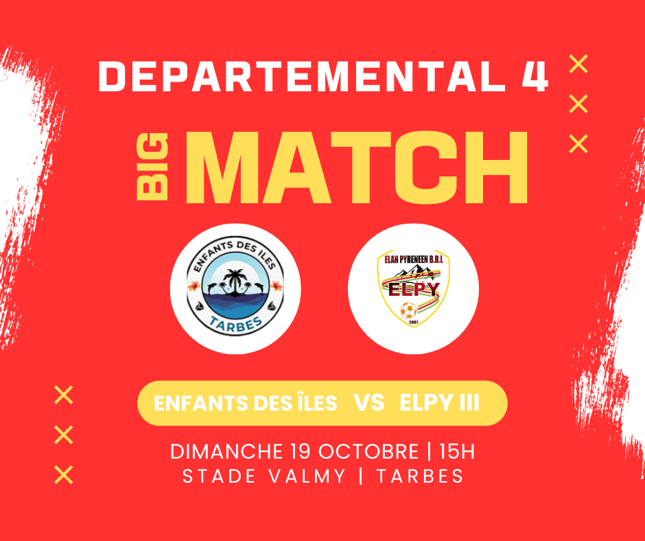 Dimanche après-midi, ce sera le grand choc entre les deux équipes encore invaincues de ce championnat. Le grand favoris des Enfants des Îles affronteront l’Elan Pyrénéen III pour savoir qui va garder la suprématie dans cette poule. Avec vingt-cinq buts inscrits en quatre rencontres, les Tarbais possèdent un pouvoir offensif qui fait peur à tout le monde. Côté ELPY, on va opposer jeunesse et solidarité pour tenter de faire tomber le favoris annoncé de la poule.