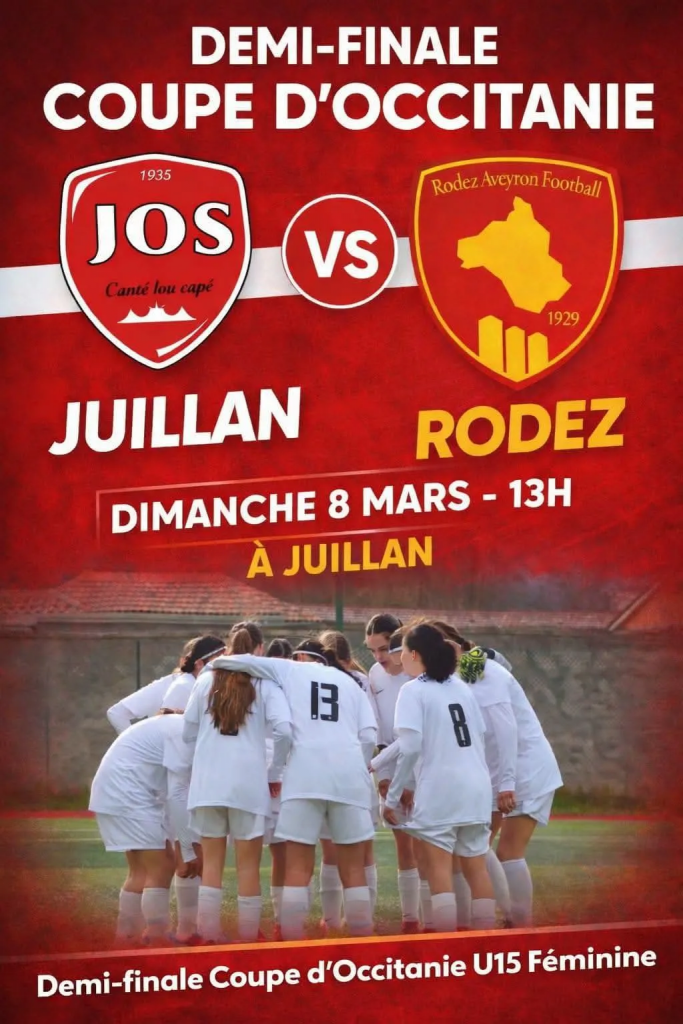Le football féminin sera au centre de toutes les attentions ce dimanche 8 mars à 13 heures au stade de Juillan. Les U15 féminines du Juillan Football s’apprêtent à disputer l’une des rencontres les plus importantes de leur jeune histoire : la demi-finale de la Coupe d’Occitanie face à Rodez Aveyron Football, formation réputée pour sa solidité et son exigence.