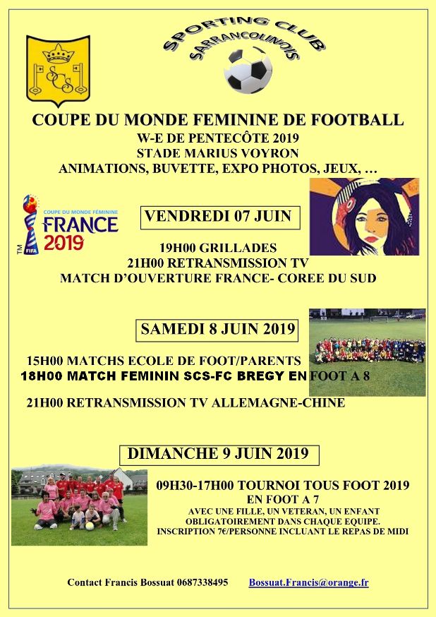 Le Sporting Club Sarrancolinois organise au Stade Marius Voyron trois jours de manifestations sur le week-end de Pentecôte à l’occasion de la Coupe du Monde Féminine de foot en France.