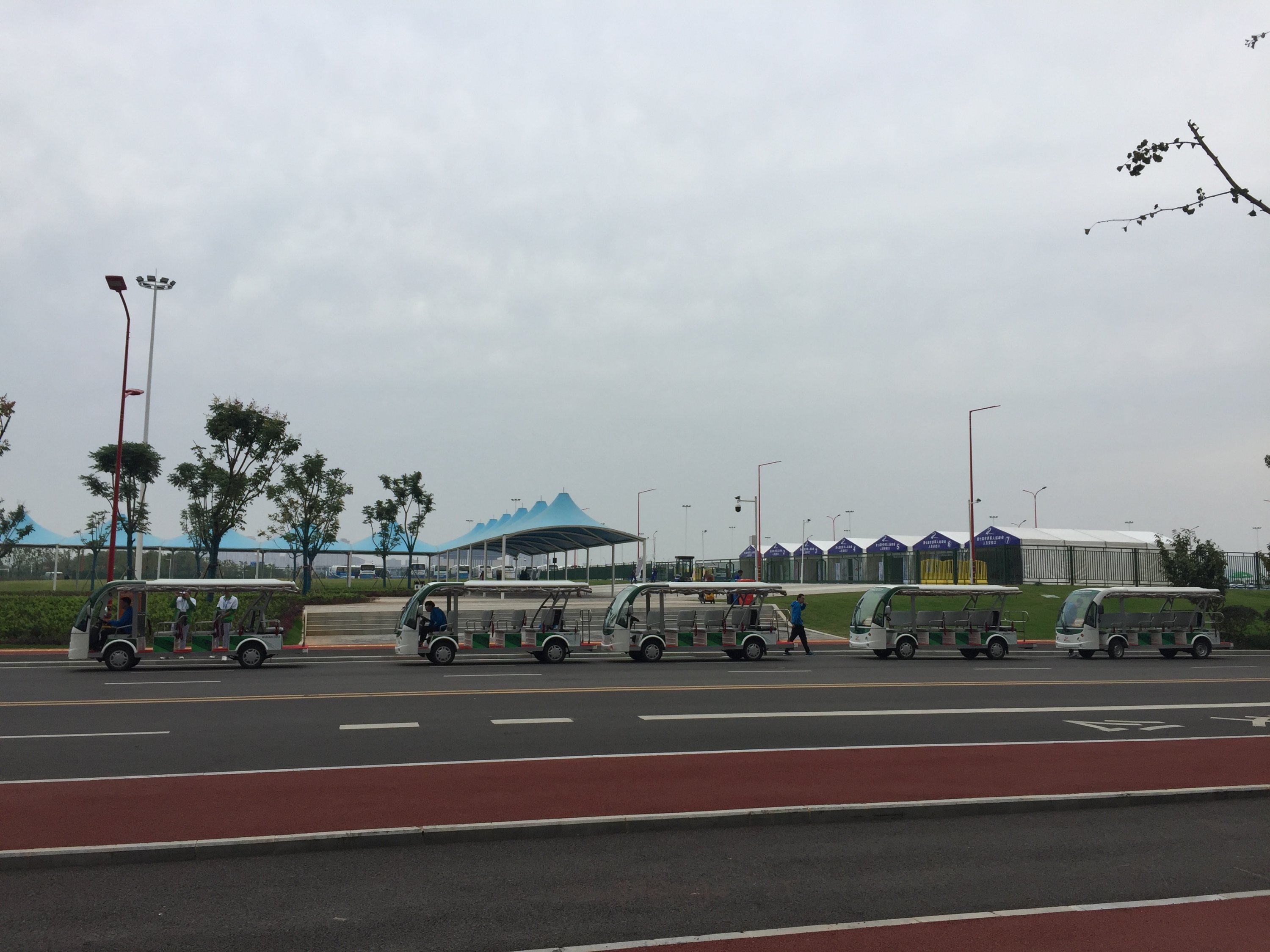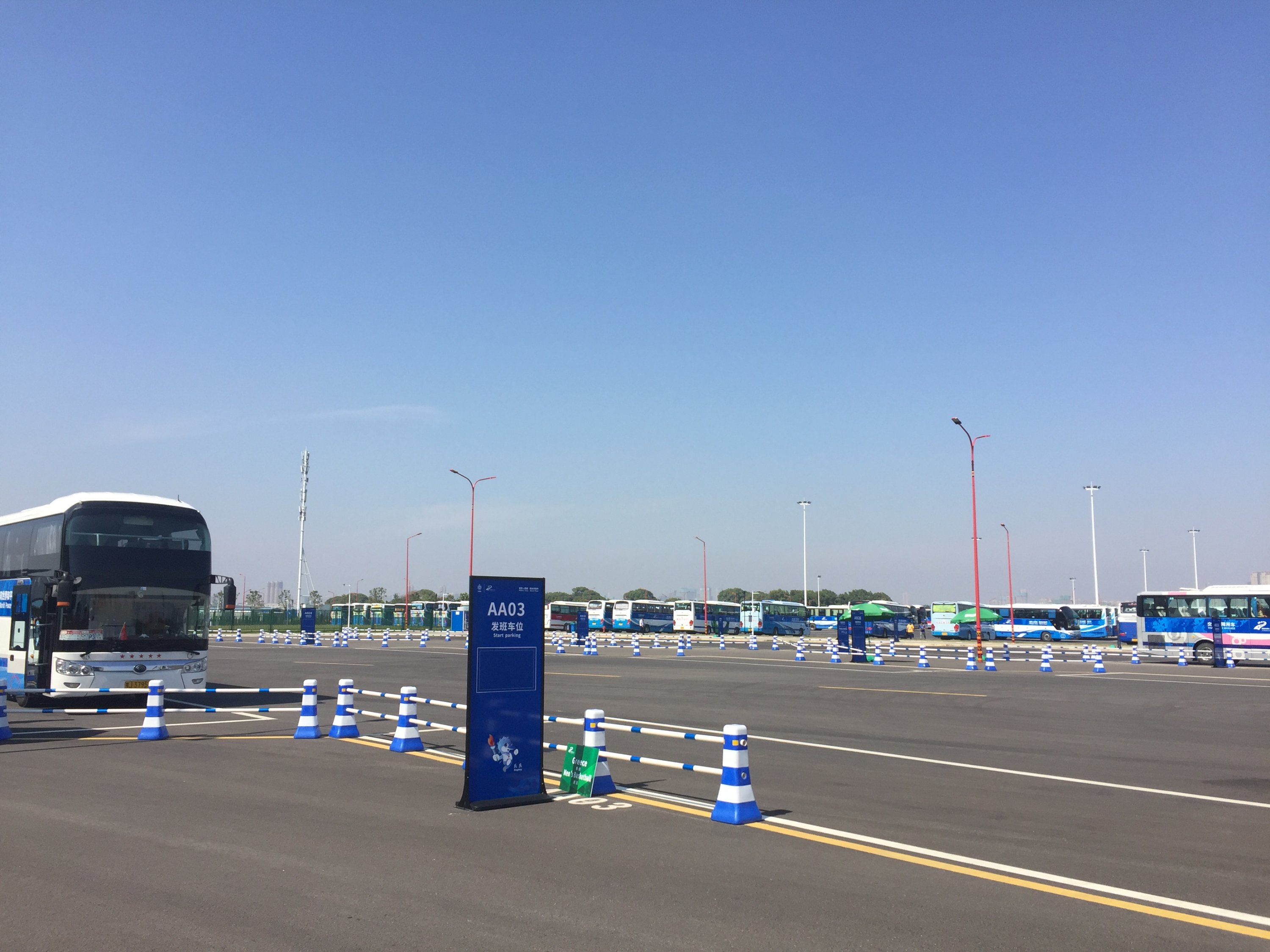 Afin que les athlètes puissent circuler sans difficulté……100 bus étaient à disposition constante des délégations.Pour circuler dans le village, des voiturettes étaient mises à disposition.