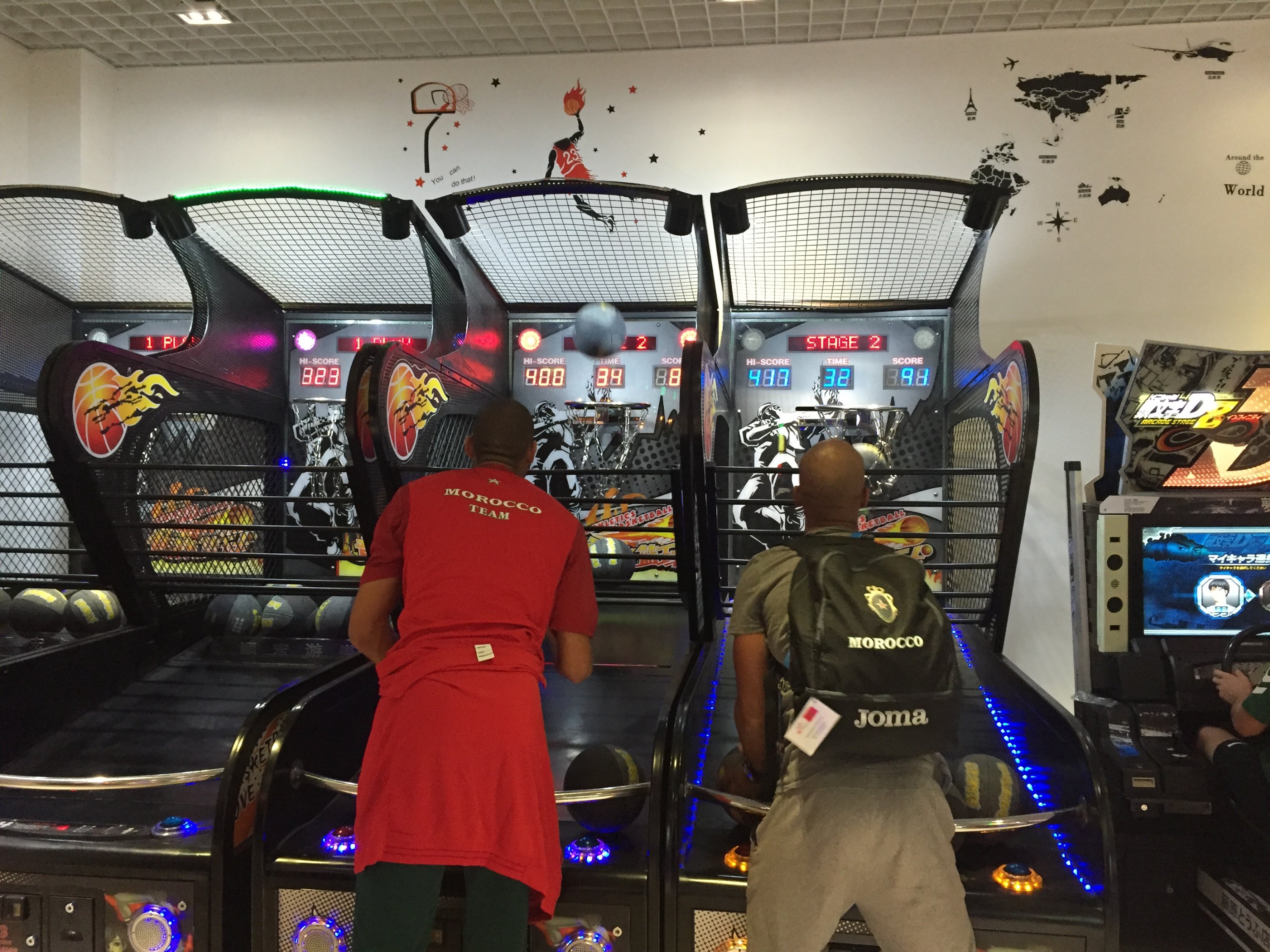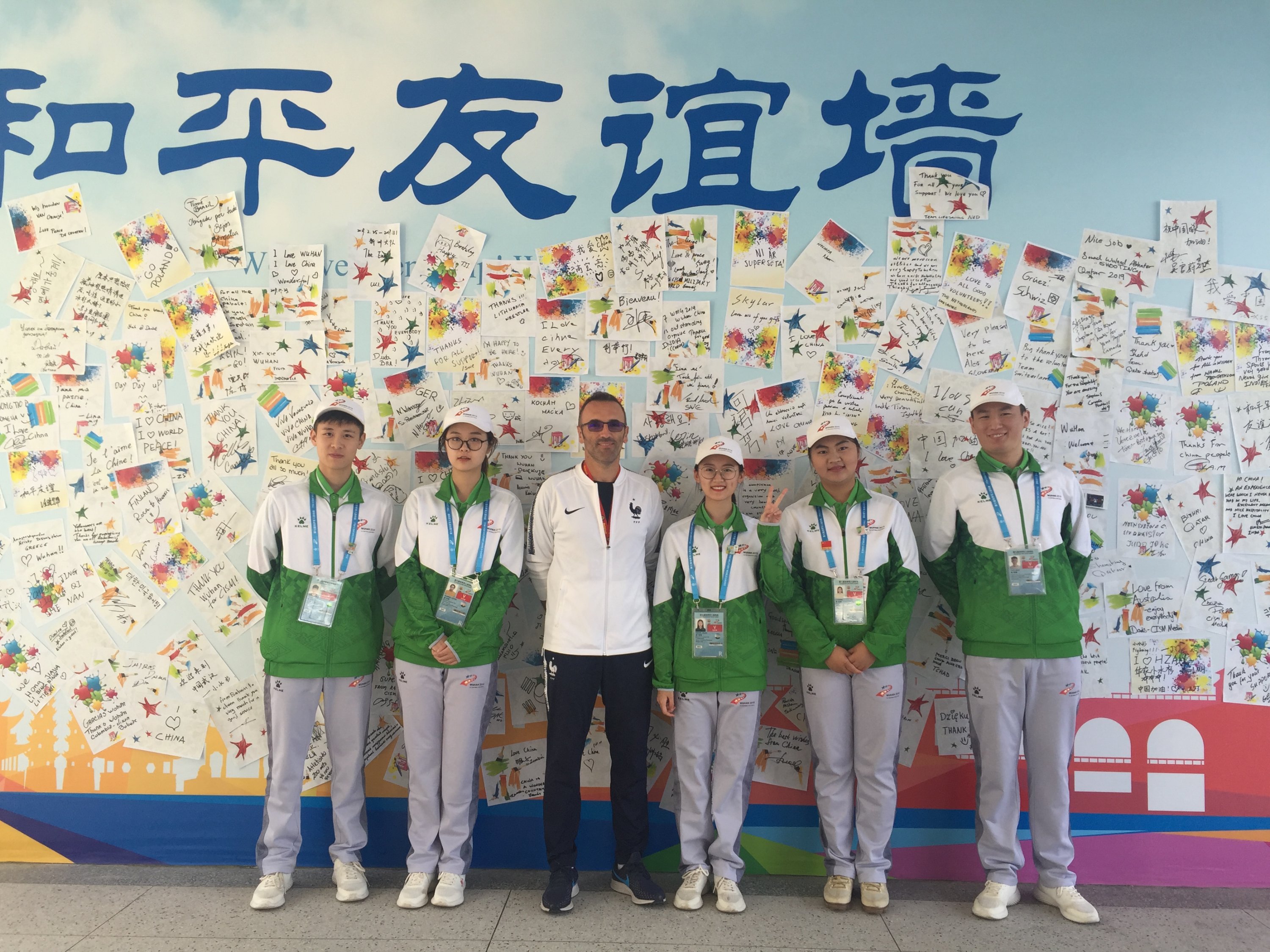Tous les participants ont signé le mur des athlètesLa tradition d’échange des pin’s La mascotte des jeuxLa levée des drapeaux à chaque arrivée d’une nouvelle nationUne salle de jeux typique de l’Asie avec…mini basketPikachouet le karaoké.Le podium au cœur du village pour immortaliser l’évènement.L’équipe de France au repos après la levée du drapeau matinal.
