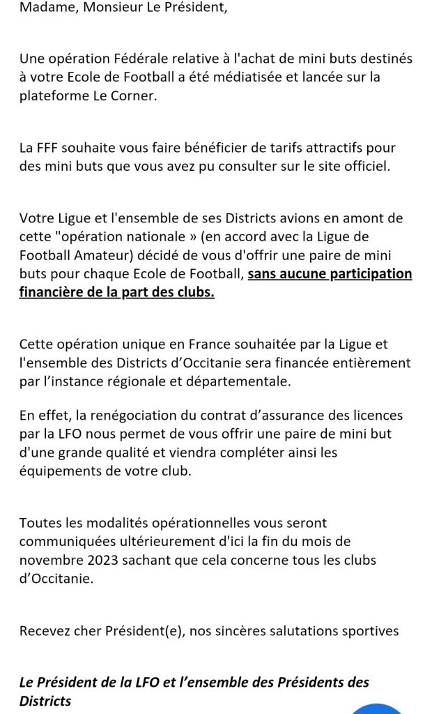 La ligue Occitanie et l’ensemble des Districts d’Occitanie dont celui des Hautes-Pyrénées ont pris une décision unique en France. Ils vont s’associer pour offrir à toutes les écoles de football une paire de mini-buts. Une décision unique en France, permise grâce à la renégociation du contrat d’assurance.