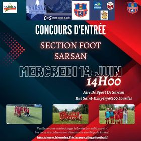 Concours d’entrée section foot de Sarsan le Mercredi 14 juin à 14H (de 6ème à 3ème) :