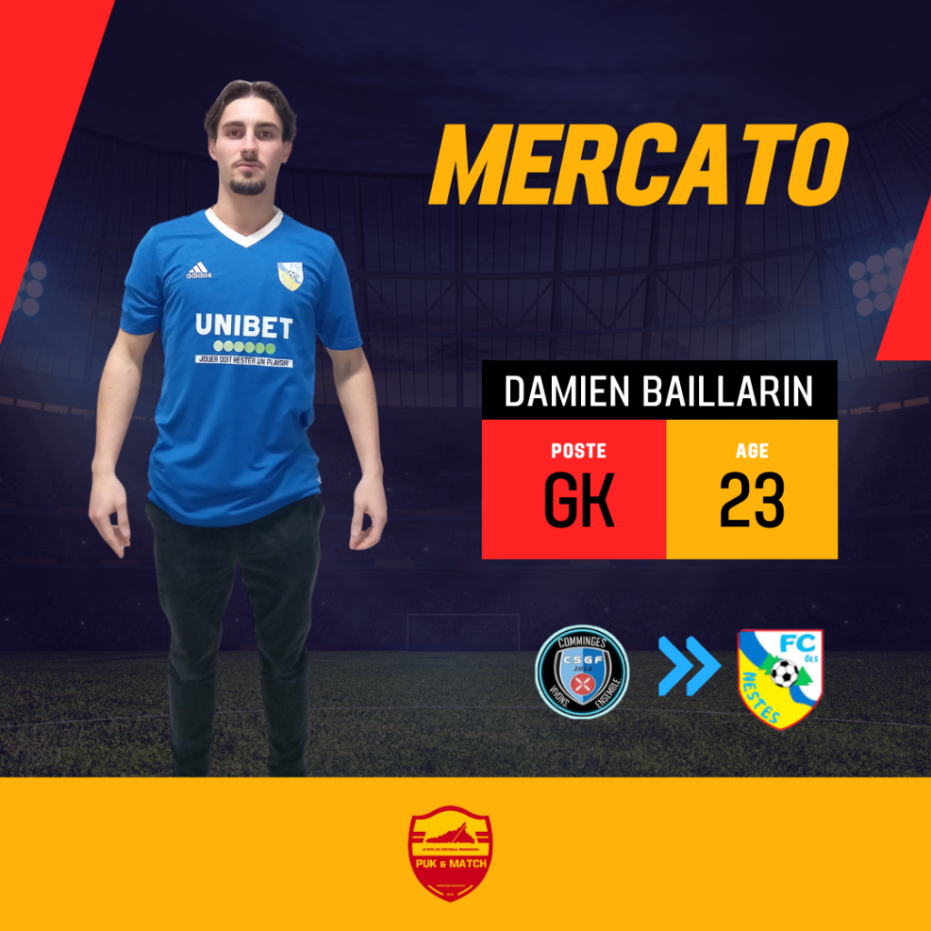 Damien Baillarin rejoint les Nestes en provenance du club de St Gaudens. Le gardien de but de 23 ans est passé par le Tarbes Pyrénées Football et le FC Plateau Lannemezan.