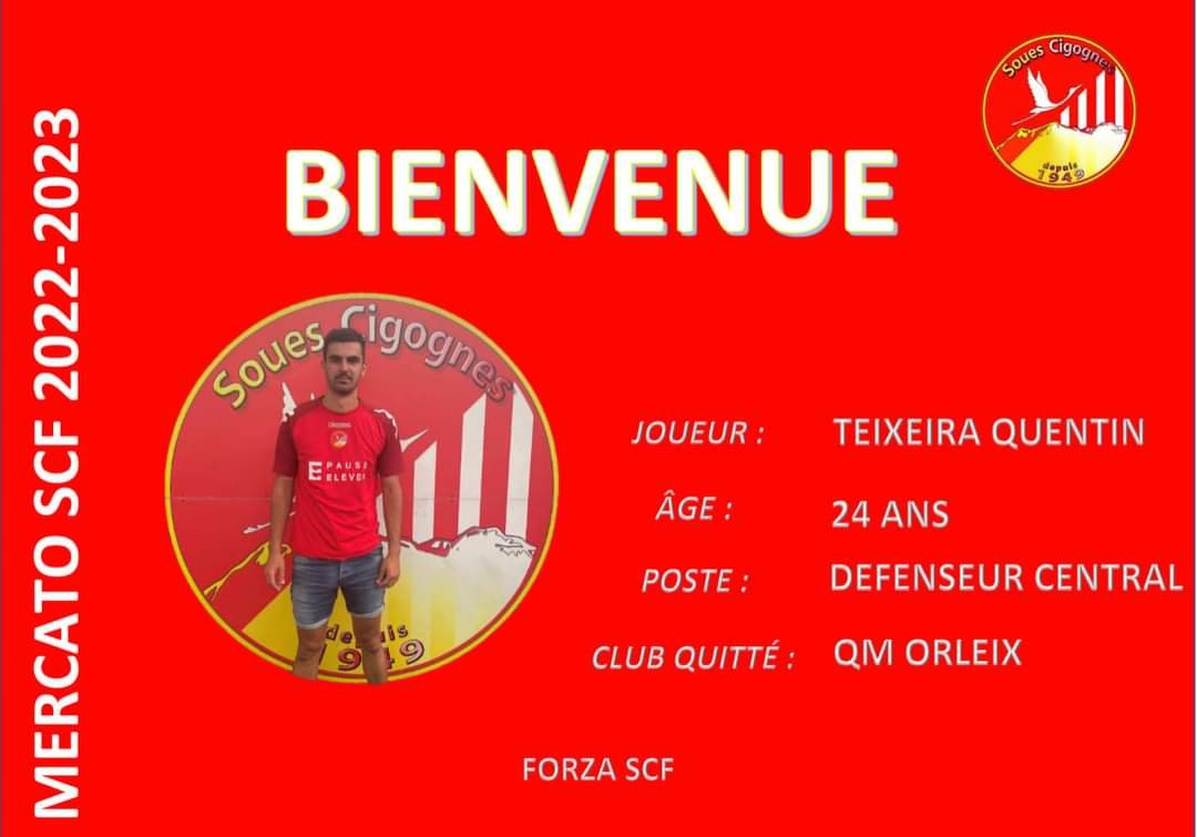 Le défenseur central de 24 ans, Quentin Teixeira, quitte le Quand Même Orleix pour le voisin Souessois. Le joueur retrouve ainsi le club de ses débuts de footballeur lorsqu’il était à l’école de foot.