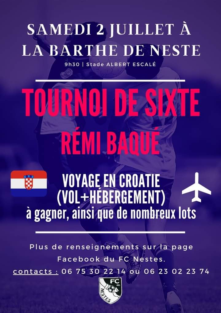On ne déroge pas à la tradition à Labarthe de Nestes qui organisera le tournoi de sixte en hommage à Rémi Baqué. C’est le samedi 2 juillet au stade Albert Escale que se déroulera l’édition 2022.