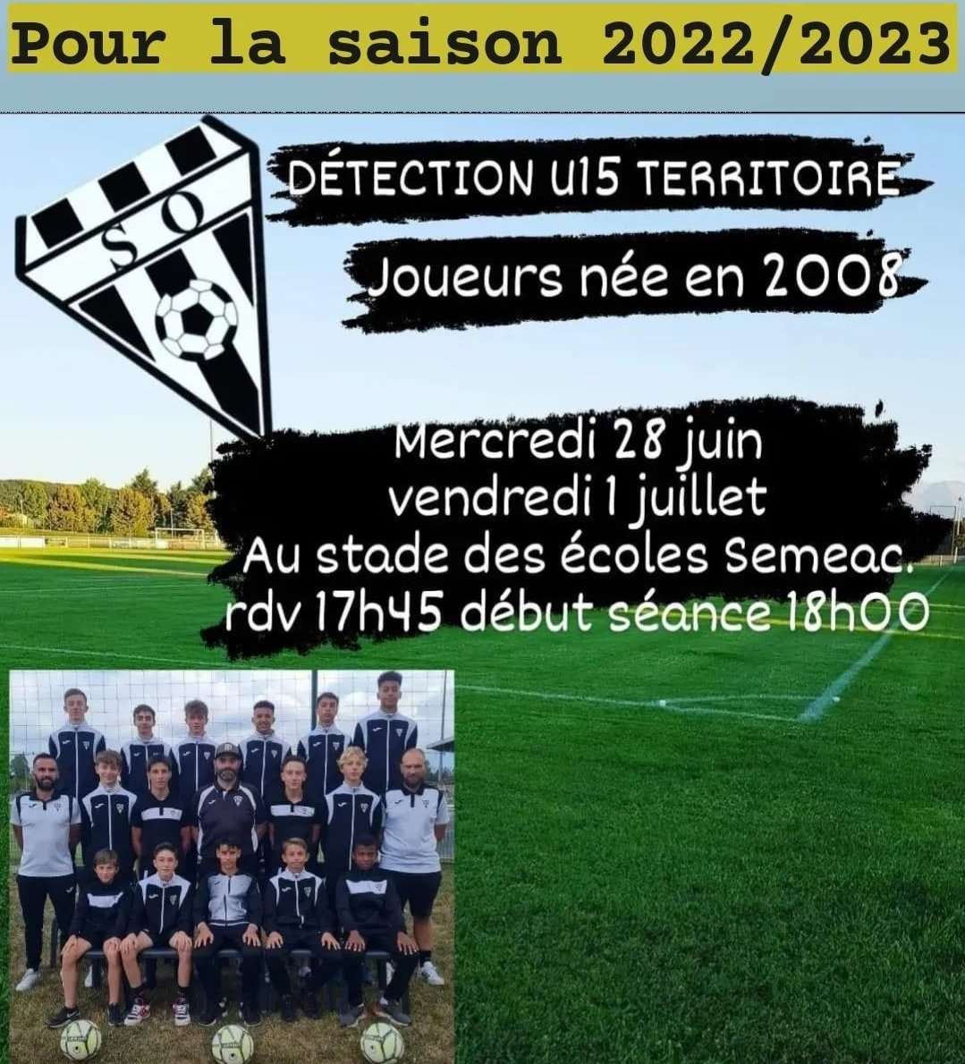Forts de leur première place au classement en U14 territoire cette saison, le Semeac Olympique realise des détections pour sa future équipe U15 territoire pour les joueurs nés en 2008.