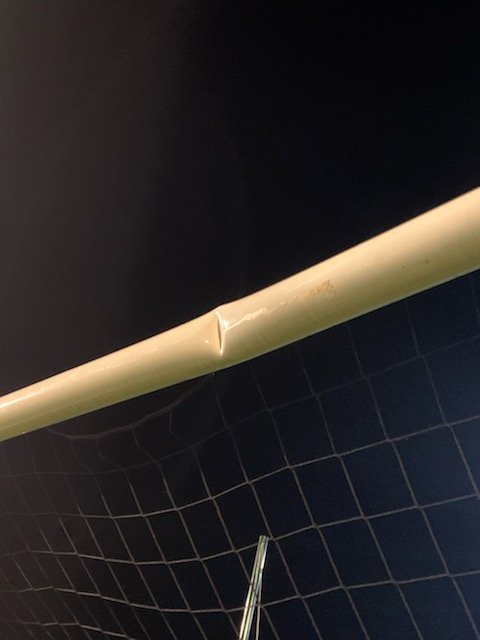 L’explication provient plutôt d’un trampoline d’une maison voisine au stade qui a réalisé l’exploit, après un sacré coup de vent, de passer par dessus la clôture en béton, traverser la route, éviter les hauts arbres, franchir le grillage du stade pour finir sa course contre la barre transversale deux cents mètres plus loin!