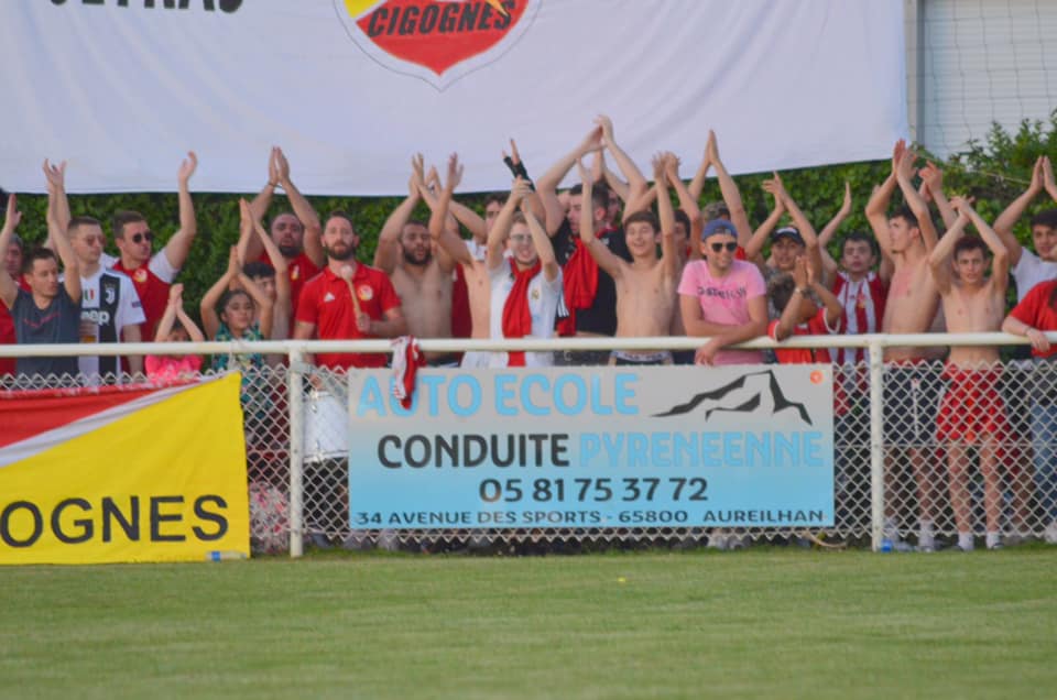 Il faisait chaud samedi soir au stade du Commandant Hispano de Soues pour la demie-finale de la coupe de Bigorre entre les Cigognards et le FC Pyrénées Vallée des Gaves. Mais la température est montée encore d’un cran pour devenir incandescente à l’entrée des joueurs avec les Ultras Souessois. Fumigènes, clapping, chants, banderoles…les supporters Souessois n’ont eu de cesse de soutenir les leurs pendant quatre-vingt dix minutes. Torses nus, chauffés par le kapo au micro et cadencés par les tambours, ce kop d’une cinquantaine de personnes crée pour l’occasion par Stephane « Riro » Rico avait aussi le soutien de la mascotte de club, bien évidement une cigogne. Des supporters qui sont restés dignes et fair-play malgré la défaite cruelle en fin de rencontre. L’expérience ayant été une réussite, il n’est pas incertain de revoir ce kop sévir lors des matchs de ligue la saison prochaine…