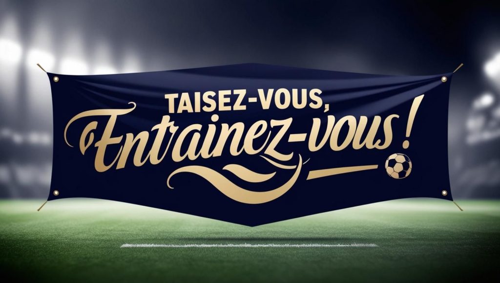 « Taisez-vous, Entrainez-vous ! » est mentionné sur la vingtaine d’étoffes confectionnées que les techniciens des deux équipes brandiront conjointement lors du protocole d’avant match devant leurs joueurs.